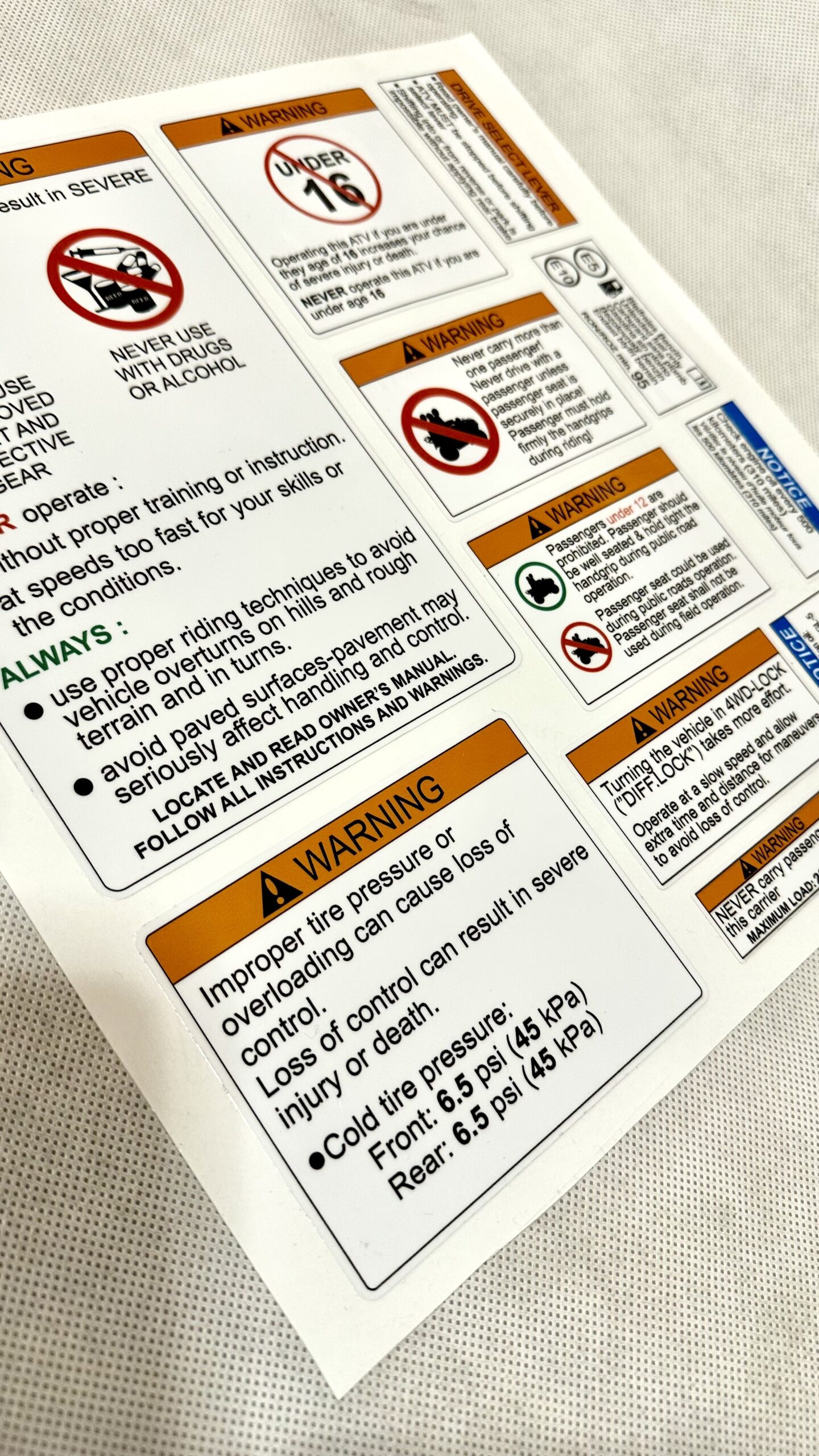 NAKLEJKI OSTRZEGAWCZE KOMPLET NA QUADA UNIWERSALNE
